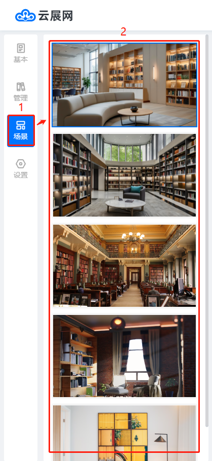 點(diǎn)擊【場(chǎng)景】,選擇書館的背景。