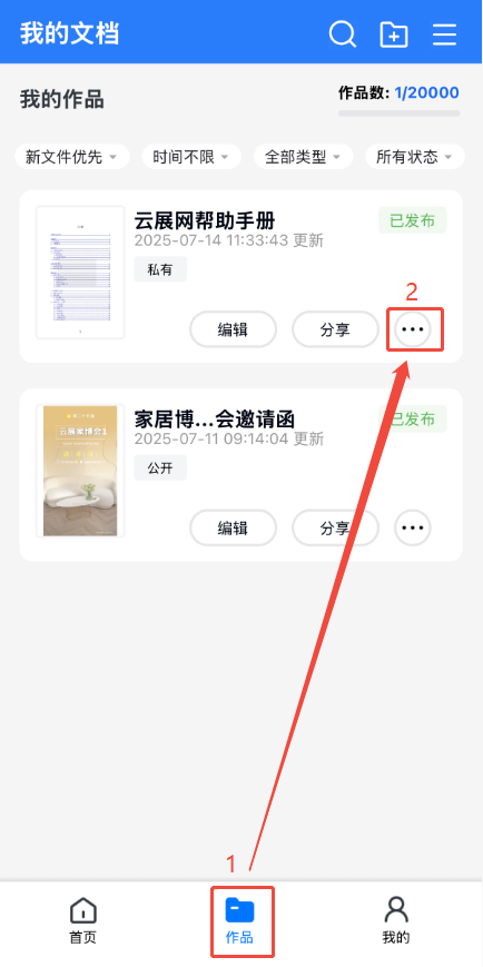 點擊【作品】,點擊對應電子書右邊的三個點,然后點擊【采集信息】,打開采集信息界面。