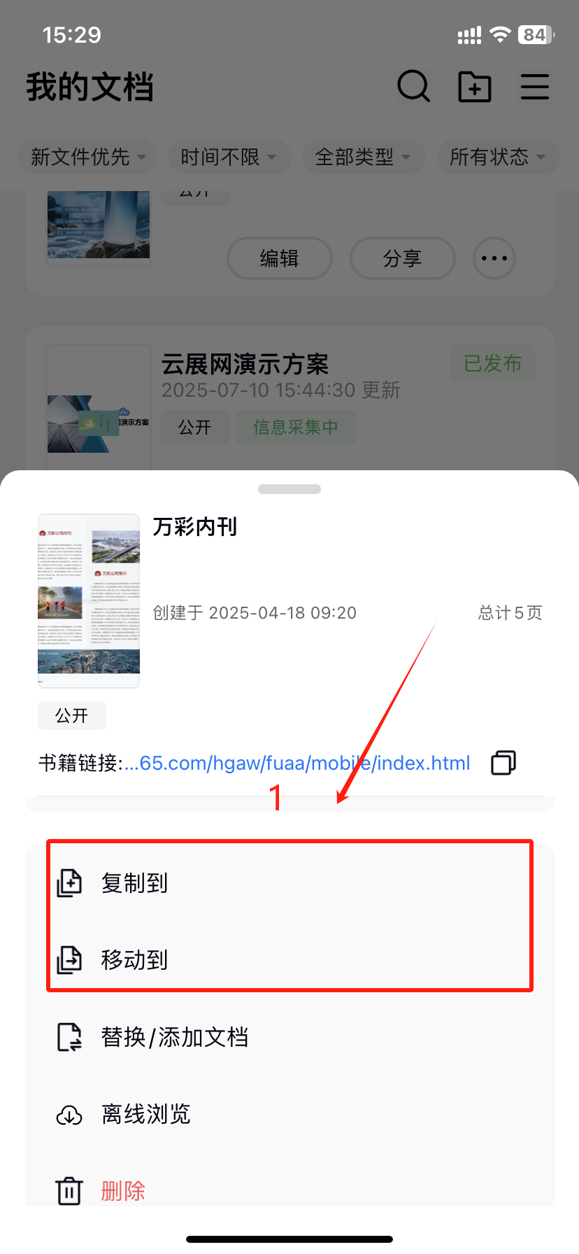 在【作品】頁(yè)面,找到需要復(fù)制/移動(dòng)的書(shū)本,點(diǎn)擊三個(gè)點(diǎn)【…】打開(kāi)