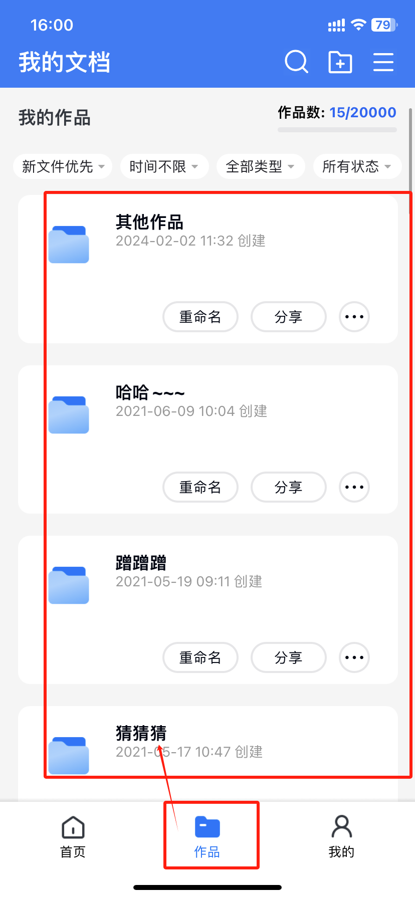 在【作品】頁(yè)面點(diǎn)擊您選擇的文件夾進(jìn)入后可以找到書(shū)本