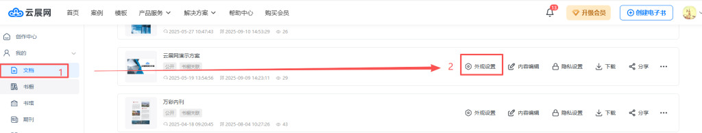 點擊【文檔】,找到對應(yīng)的書籍,點擊【外觀設(shè)置】打開
