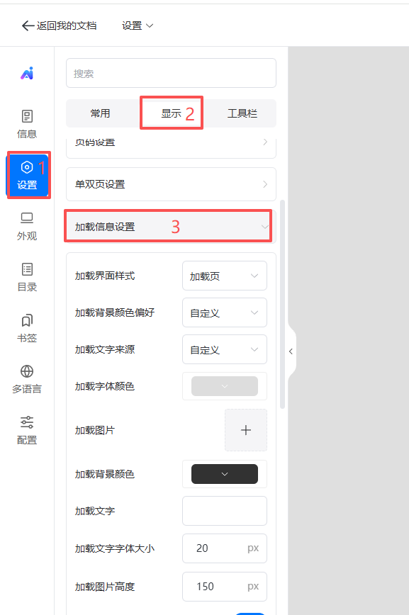 點(diǎn)擊【設(shè)置】,點(diǎn)擊【顯示】,找到【加載信息設(shè)置】打開(kāi)。