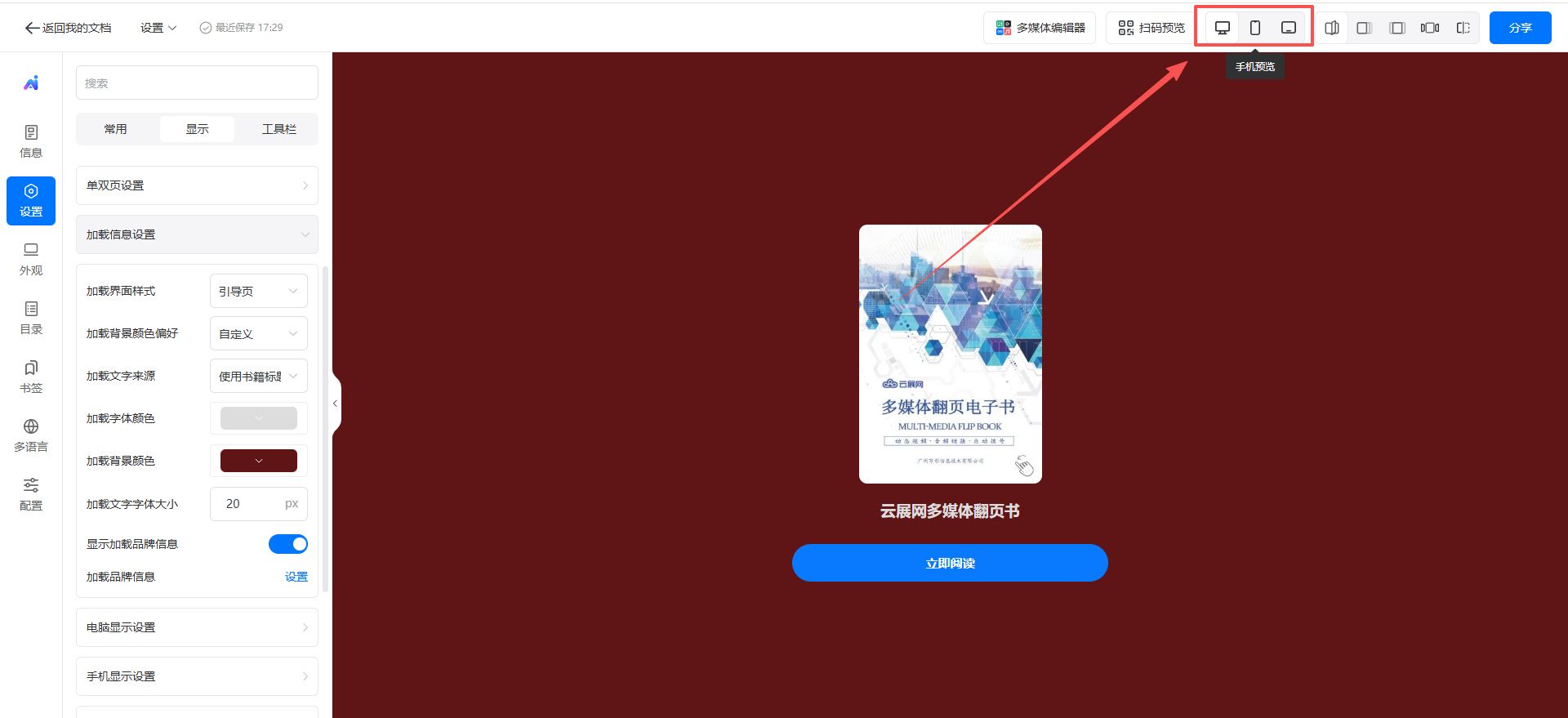 用戶可以自定義設(shè)置電子書(shū)加載頁(yè)面的文字,圖片、和添加視頻作為開(kāi)場(chǎng)介紹,還可以在加載頁(yè)面上展示自己的品牌信息,實(shí)現(xiàn)個(gè)性化展示和品牌推廣。