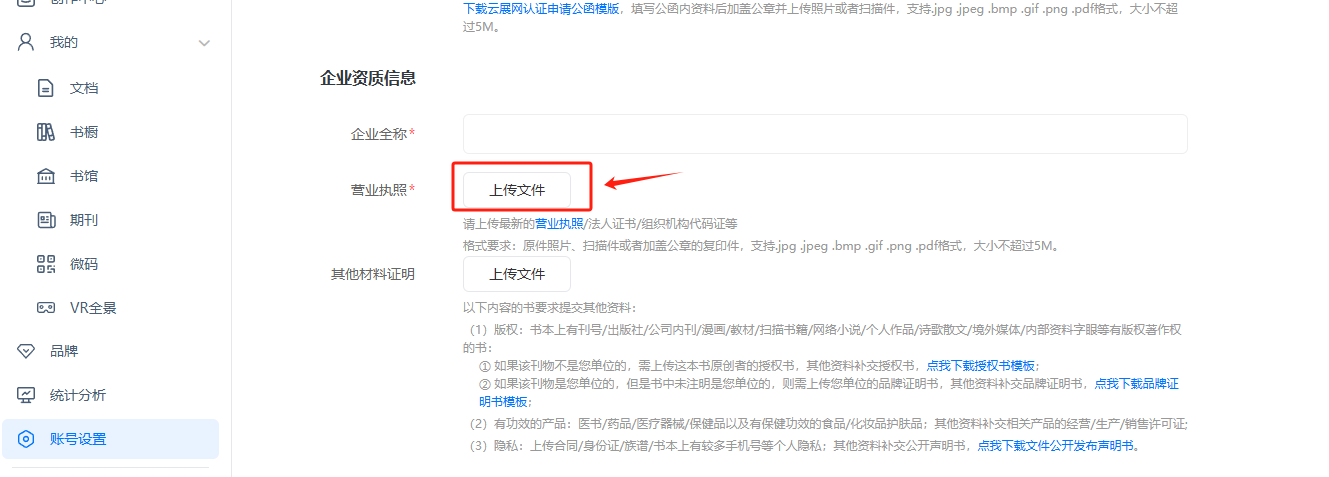 2) 上傳營(yíng)業(yè)執(zhí)照/組織機(jī)構(gòu)代碼證/法人證書等