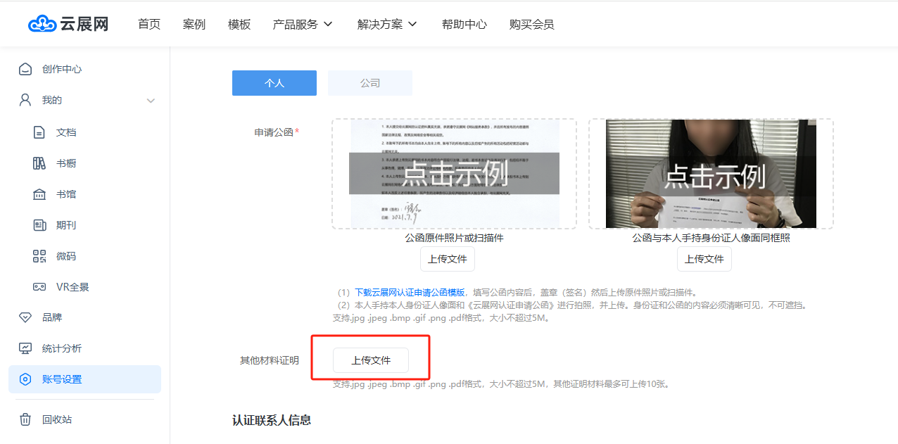 如果您上傳的資料屬于公司/單位的,請(qǐng)選擇公司進(jìn)行認(rèn)證。如果您上傳的資料屬于您個(gè)人所有,請(qǐng)選擇個(gè)人進(jìn)行認(rèn)證。如果您上傳的是公司的文件卻選擇了個(gè)人認(rèn)證,認(rèn)證不會(huì)通過。