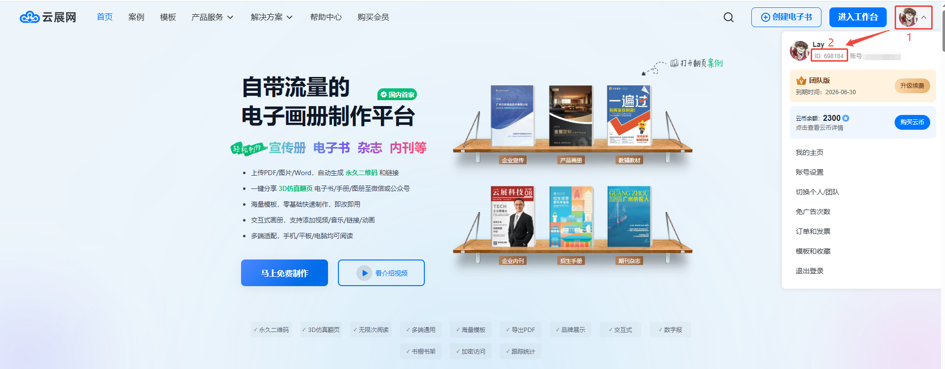 登錄賬號后,點擊右上角頭像即可查看用戶id。