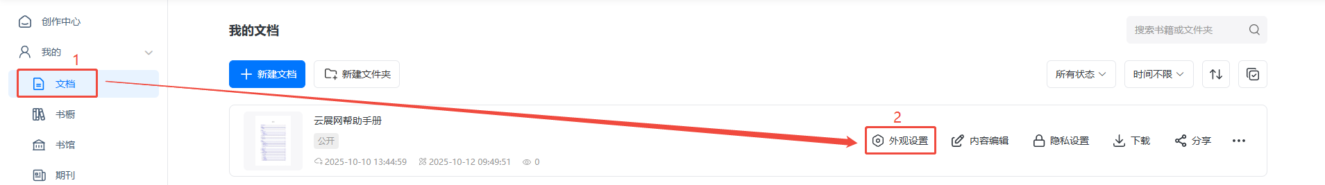 在【文檔】找到需要設置的電子書,點擊【外觀設置】進入。
