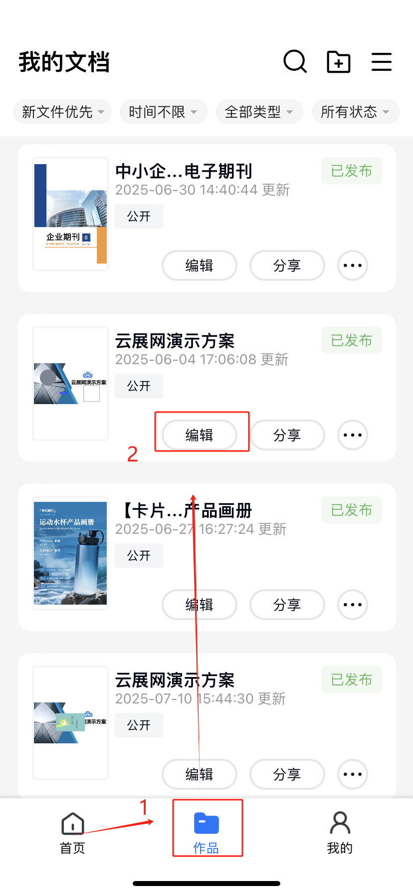 點(diǎn)擊【作品】打開,點(diǎn)擊【編輯】進(jìn)入