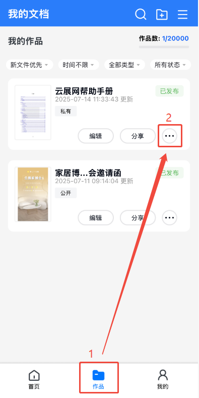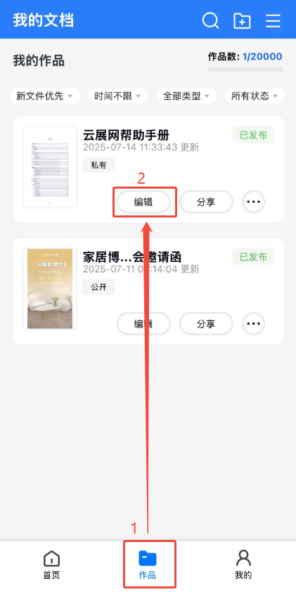 (1)點(diǎn)擊【作品】,然后點(diǎn)擊對(duì)應(yīng)電子書(shū)的【編輯】,最后點(diǎn)擊下方【基本設(shè)置】。