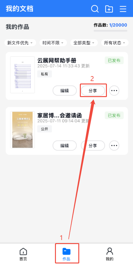 點(diǎn)擊【作品】,然后點(diǎn)擊對(duì)應(yīng)電子書(shū)的【分享】,最后點(diǎn)擊【書(shū)籍鏈接碼】,即可將電子書(shū)的二維碼保存到手機(jī)相冊(cè)上。
