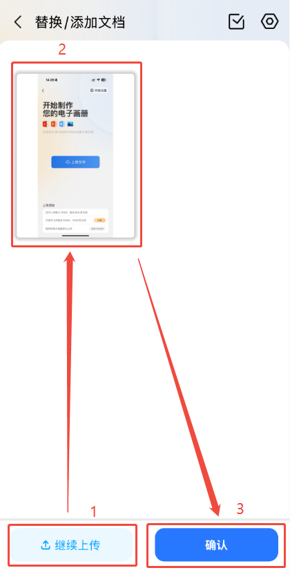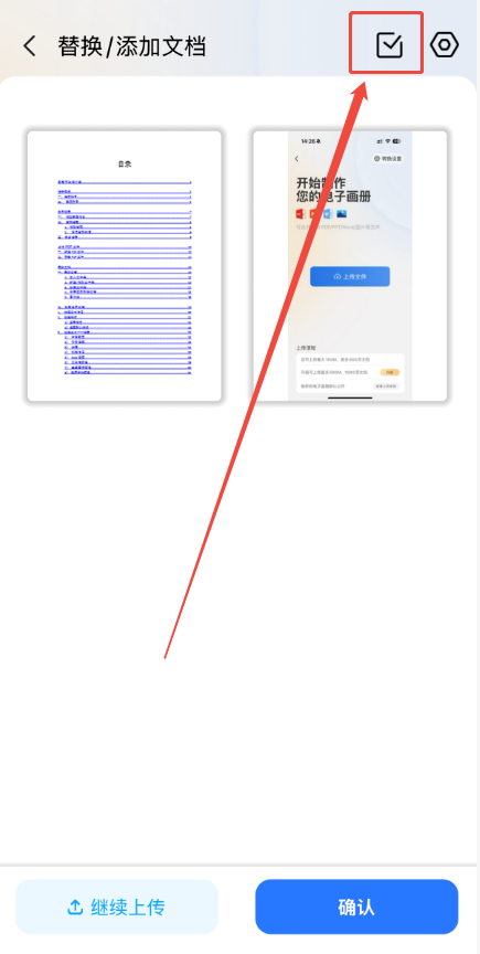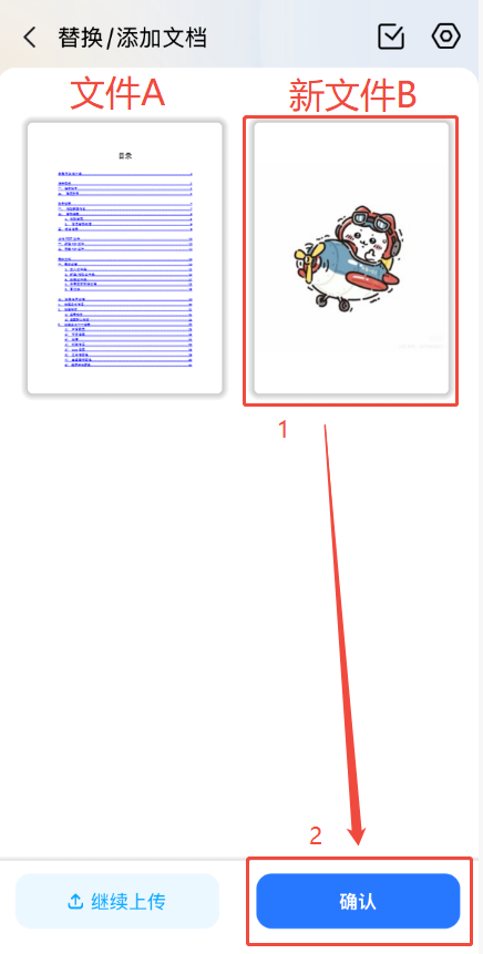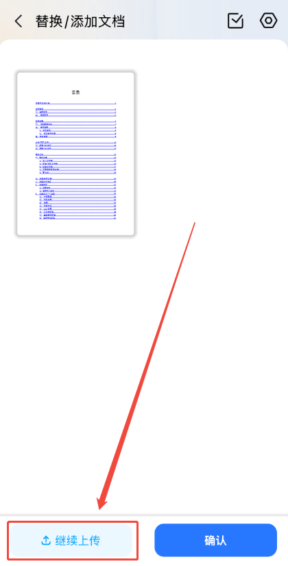 b)點擊左下角【繼續(xù)上傳】上傳新文件后,點擊確認(rèn)即可。