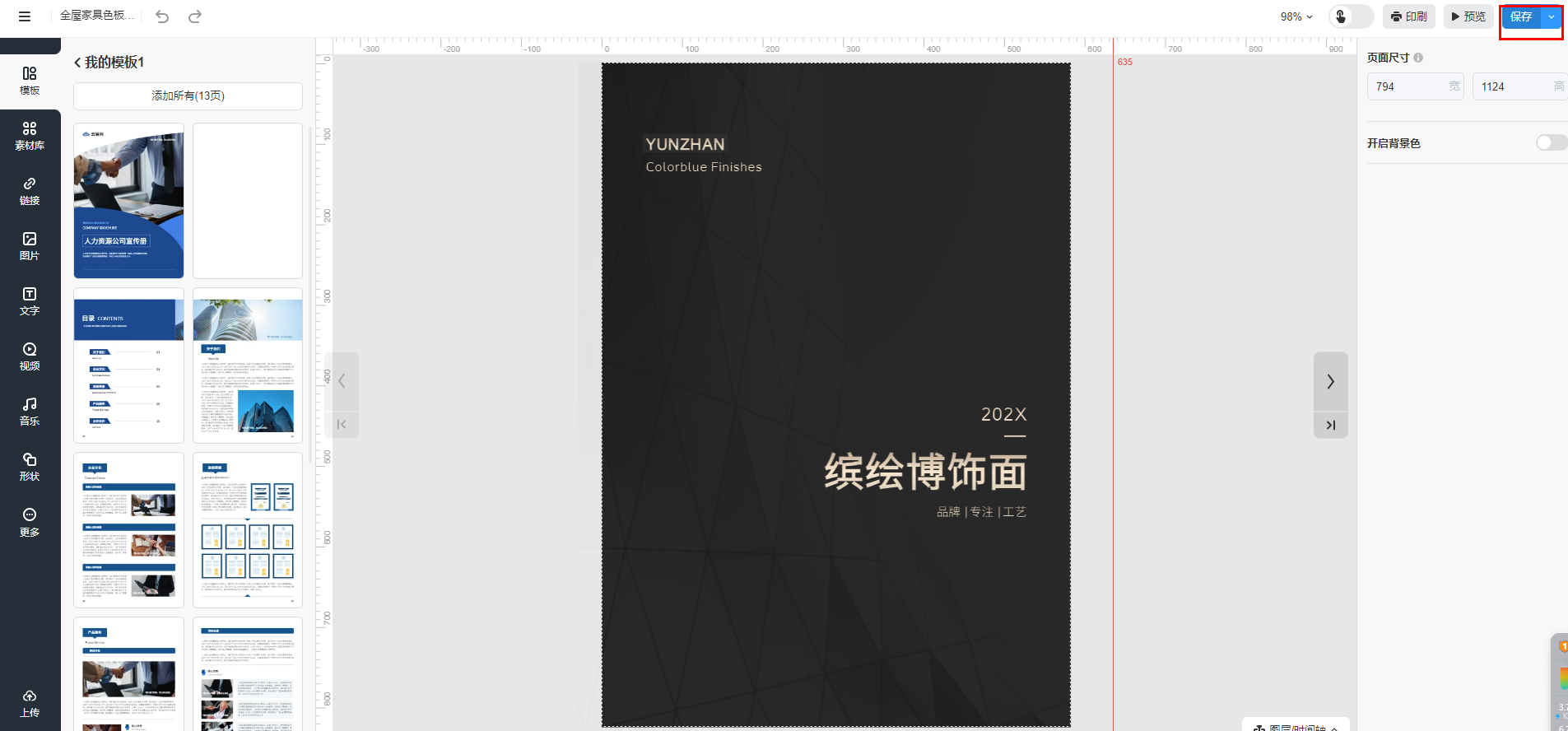2.上傳已經(jīng)設(shè)計(jì)好的文檔制作的電子書即使另存成了模板,也無法更改其中文字和素材。