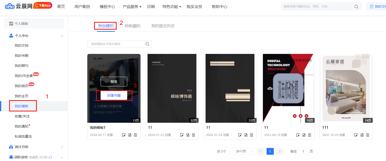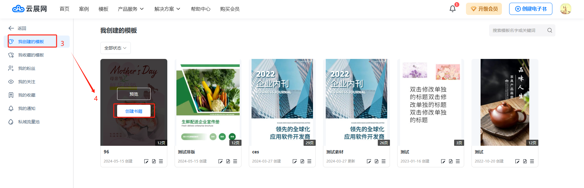 (4)另存的新模板會保存在【我的模板】/【我創(chuàng)建的模板】中,如果需要使用該模板進(jìn)行制作,則點(diǎn)擊【創(chuàng)建書籍】即可
