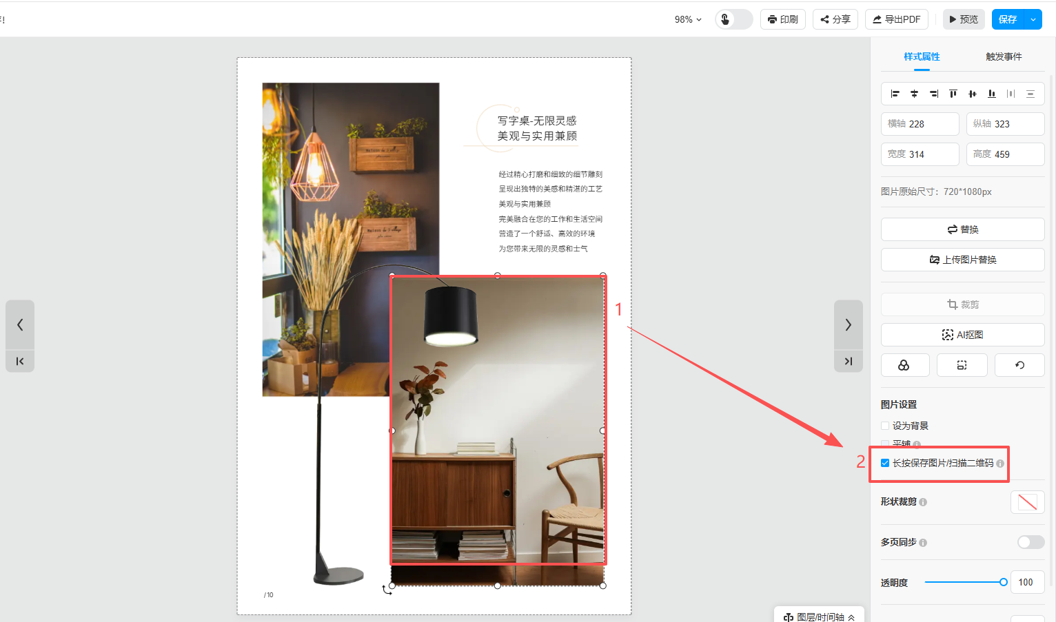 該功能能讓讀者在瀏覽電子畫冊(cè)時(shí),若看到心儀的產(chǎn)品圖,可直接長(zhǎng)按保存,效果如下: